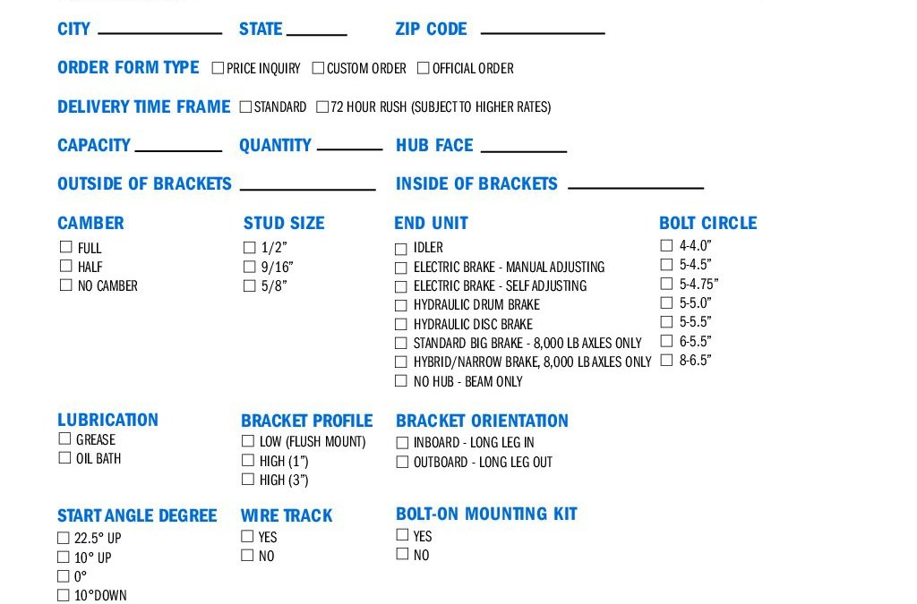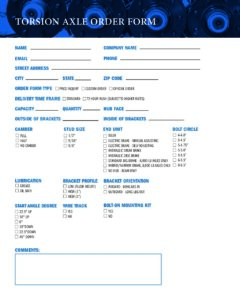 Torsion Axle Order Form
